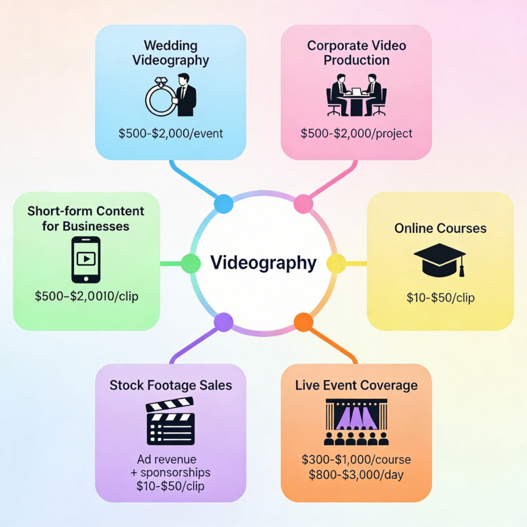In today’s creator economy, videographers are earning through content creation, digital products, stock footage, social media services, and AI-powered workflows—often before landing their first “real” client.